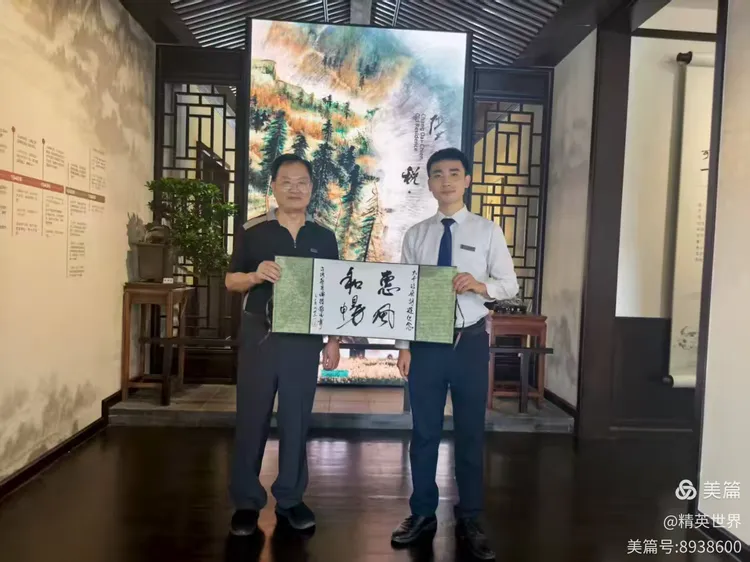 参访尾声,情之所至。在故居管理馆长的诚挚邀请下,蔡俊章先生欣然提笔,在案前挥毫。他凝神聚气,以遒劲有力的笔法,饱含深情,写下“惠风和畅”四个酣畅淋漓的大字。这不仅是对当日宜人天气的应景描绘,更是对两岸文化艺术交流如沐春风般和谐顺畅的美好期许与象征。这幅凝聚着敬意与情谊的墨宝,被郑重赠予馆方永久珍藏,成为此次寻根之旅最珍贵的见证。