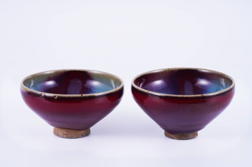 色,紫色可谓沁人肺腑,蓝色艳丽醉人。整体釉层光亮,细腻莹润,实属上品,尤其是碗外壁甚美,内壁斑纹发色同样耀眼,如此外璧全红者在当时烧造难度甚高,可谓万里挑一,故流传于后世者至为稀少。