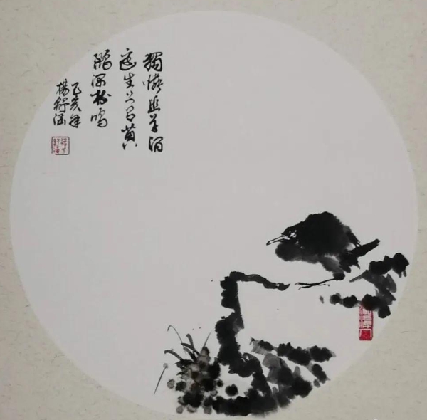 除了对笔墨的运用,杨舒涵在构图上也展现出了极高的艺术造诣与独特的个人风格。无论是圆形构图还是长方形构图,她皆能巧妙布局画面元素,精准掌控平衡与和谐,于圆形中让花朵与枝叶均匀分布以稳持重心,在长方形里借助元素的大小、疏密与位置构建平稳秩序。同时,其虚实相生的构图手法更是精妙绝伦,如芭蕉图,实写芭蕉叶而虚绘背景,在鲜明的对比下,不仅使鸟的主体形象跃然纸上,格外突出,更营造出空灵悠远的意境,让整个画面宛如诗意的梦幻之境,满溢着艺术的灵韵与深邃的审美意趣,彰显出她对构图艺术深刻的理解与卓越的驾驭能力。