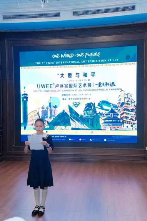 2025年10月7日,第七届“同一个世界·同一个未来”UWEE卢浮宫国际艺术展重庆平行展暨第七届UWEE卢浮宫国际艺术展开幕仪式于重庆市法国领事馆旧址隆重举办!本次活动收到了来自全球多个国家的两百余幅优秀作品,最终评选出50幅参展作品,以及12幅获奖作品,其中艺术家组和青少年组金奖各一名,分别是《静贵》周雯 Vanessa Zhou(艺术家组)、《泡泡世界》文婧伊(青少年组),银奖得主:艺术家组《ARDOUR》吴会花以及青少年组《IMPERFECTIONS》贺思焱、《森林世界》叶蓁蓁,以及铜奖得主,艺术家组《Peace Square》陈卓、青少年组分别是:《Sunset Glow》吴沛宜、《未来图书馆》谈心雨、《Fishing Dream Land》Emily H Kan、《Nature’s Melody, Life Intertwined》余思妍,以及最佳创作特别奖《平行山水图》王明瑞,每幅作品都蕴含着作者独特的创意和真挚的情感,展现出多元文化交融的艺术魅力。