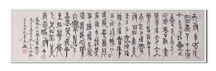 在书法艺术已获广泛认可后,李志斌并未停下脚步,而是将目光投向了非遗书法 —— 鸟虫篆。这份缘分始于一次博物馆参观,当他见到青铜器上优美灵动的鸟虫篆文字时,“仿佛听到了跨越千年的召唤”,即便当时已是小有名气的楷书书法家,毅然决定暂停部分商业创作,投身这一充满挑战的非遗传承事业。