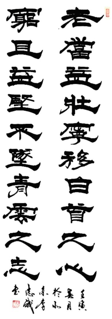 四十年来,他从临摹柳公权、颜真卿等书法大家入手,刻苦钻研,认真临习,逐渐走出兼具传统底蕴与个人风格的艺术道路。“楷书工整见骨,行书流畅含韵,隶书古雅厚重,草书潇洒奔放,篆书苍劲有力”,这是业界对李志斌书法功底的评价。