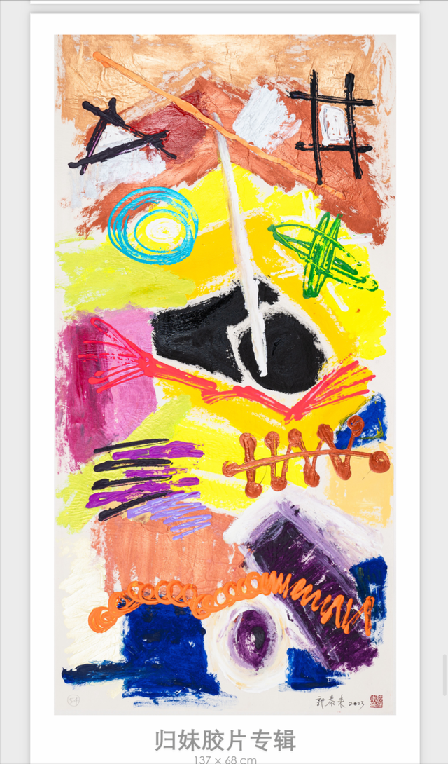 他通过极具个人风格的当代艺术语言,将三部经典内在的关联性——从对世界的浪漫窥探,到对规律的抽象概括,再到对身心的内在实践——清晰地呈现出来,形成了一个逻辑自洽、彼此呼应的视觉体系。使分散的智慧脉络在同一流动场域中交汇共鸣。郭泰来的创作既非复古亦非解构,而是一场以身心投入的当代仪式,在彩墨晕染与笔势运行间,完成对古典认知方式的沉浸式复现。画布之上,每一次叠加皆是对文明密码的重新诠释,既沉淀着千年智慧的静谧,又跃动着未来意识的璀璨光芒。此等创作,乃是对时间的逆向溯游,亦是令古老思维于当下重生的炼金之术。