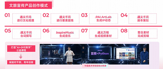 获得特等奖的齐鲁工业大学的参赛团队围绕遂川人文非遗、茶文化、自然风光三大元素,打造了遂川旅游形象IP设计。“我们通过对遂川县的深入调研,将本地文化元素融入在IP设计中,通过阿里云的PAI ArtLab平台上Stable Diffusion模型、lora模型等多个AI模型,多次调试来生成最佳的效果;同时打造了遂川旅游IP形象互动AI智能体,调用阿里云通义大模型,实现遂川旅游IP智能可视化交互。我们希望通过现代设计语言实现传统与潮流的对话,吸引Z世代年轻人来到遂川,爱上遂川。 ”