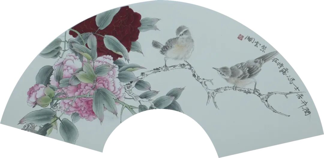 在色彩运用上,冯露展现出了独特的审美与把控能力。她的色彩并非是对自然的简单复制,而是经过精心调和与搭配。在表现花卉的娇艳时,她运用柔和而明艳的色调,既凸显了花朵的美丽,又不会给人以艳俗之感;在描绘枝叶时,深浅不一的绿色层次丰富,营造出一种自然的立体感与空间感。整体色彩和谐统一,营造出一种宁静而美好的氛围,让观者沉浸其中,忘却尘世的喧嚣。