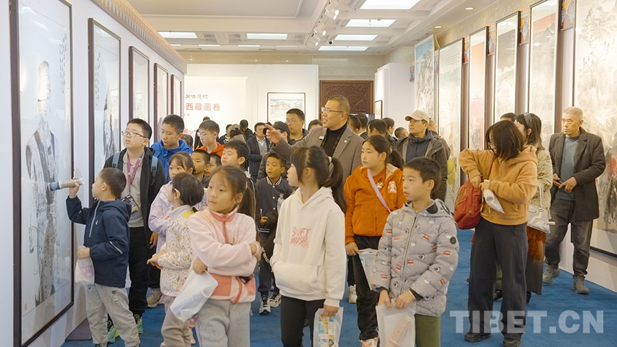 图为“铸牢中华民族共同体意识・丹青绘中华之西藏画卷”刘洋国画作品展观展现场 摄影:姚浩然