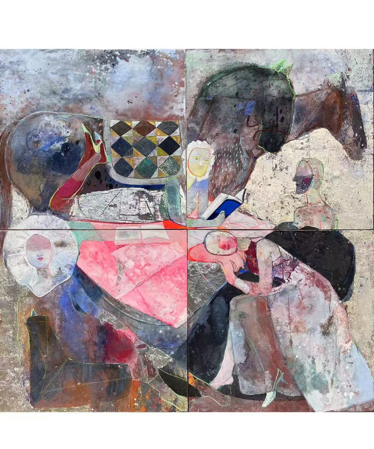 在祝贺蜂拥而至之时,大家更多关注到的是王玉华作品的创作力与艺术感染力,看到她的才气,我们家人更感慨的是她对艺术的执着和发自肺腑的热爱。记得小孙子刚满三岁,她以绘画专业成绩第一的名次取得中央美院研究生班的入学通知。当她拿到渴盼已久的入学通知书时,内心却异常矛盾,一方面她梦想进中央美院学习深造,另一方面,她实在放心不下孩子,而且当时我还在职,儿子上班也很忙。看得出来王玉华对艺术也是真心的喜欢,老伴大包大揽照看孙子的一切,全家最终全力支持她,让她安心到北京学习,她也没有辜负家人的期待,中央美院让她打开了视野,开拓了眼界,特别是综合材料绘画,让她有了将传统绘画与国际绘画进行对接、转译的探索,在中央美院胡伟教授的悉心指导下,她致力于打破传统界限的艺术形式,对单画种演变及多画种多种技法的融合进行尝试的同时,更加注重材料语言的形式美感和创新研究,最终达到思想性和艺术性的融合,摒弃了片面为材料而材料的偏颇、狭隘的理解,尝试以国际视野,研究形式语言的多元化与创作理念的时代性,形成独特的创作手法,进而有了个性化的绘画语言和绘画风格。结束学业后,她先后在北京798艺术区B07.NUOART、北京锦都艺术中心、北京今日美术馆个展 、北京798艺典空间个展、北京798U画廊、上海八大画廊等举办个展,参加艺术北京、艺术厦门、艺术青岛、艺术台北、台北艺术博览会、上海艺博会等艺术活动,在法国、英国、日本、韩国、意大利等国家举办画展, 连续入选第四届、第五届、第六届全国青年美展, 入选第八届北京国际双年展,连续两次入选全国综合材料绘画双年展并荣获优秀作品奖(最高奖项)、连续入选第十一届(获奖提名)、十二届、十三届、十四届(银奖)全国美展,在“回望中国-纪念辛亥革命一百周年”大展中荣获优秀作品奖(最高奖项)。