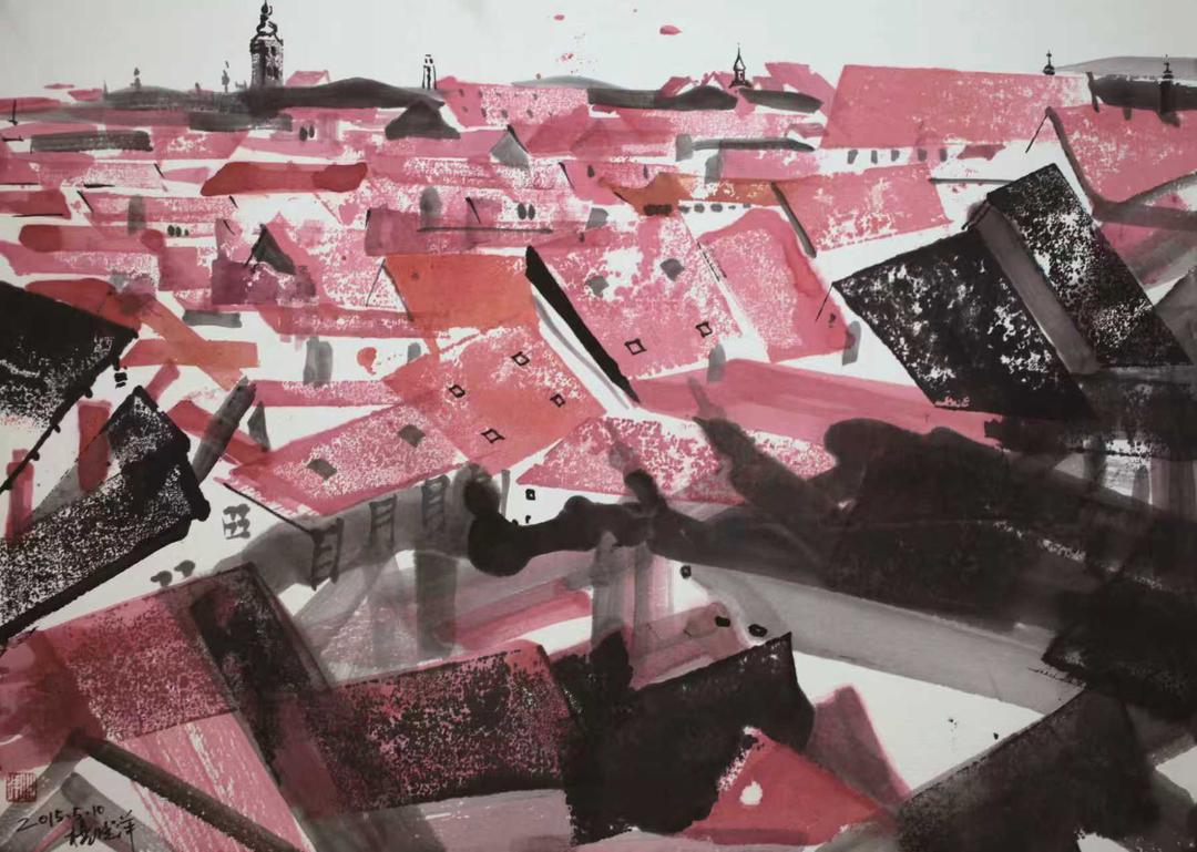 杨晓洋,《纽伦堡印象》(The Impressions of Nuremberg),纸本水墨,35 × 45 cm,2024