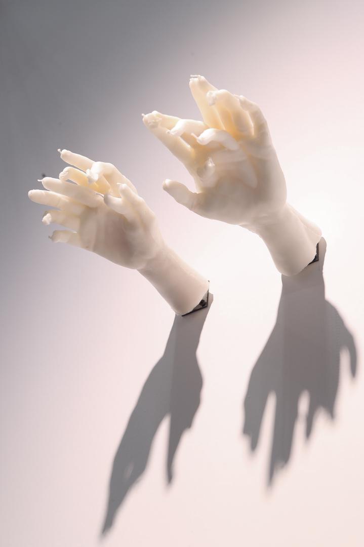 宋紫薇,《壳中之灵》(Spirit in Shell),蜂蜡、海盐、棉线,25.9 × 12.9 × 10.1 cm *2,影像,1h 4'44",2025