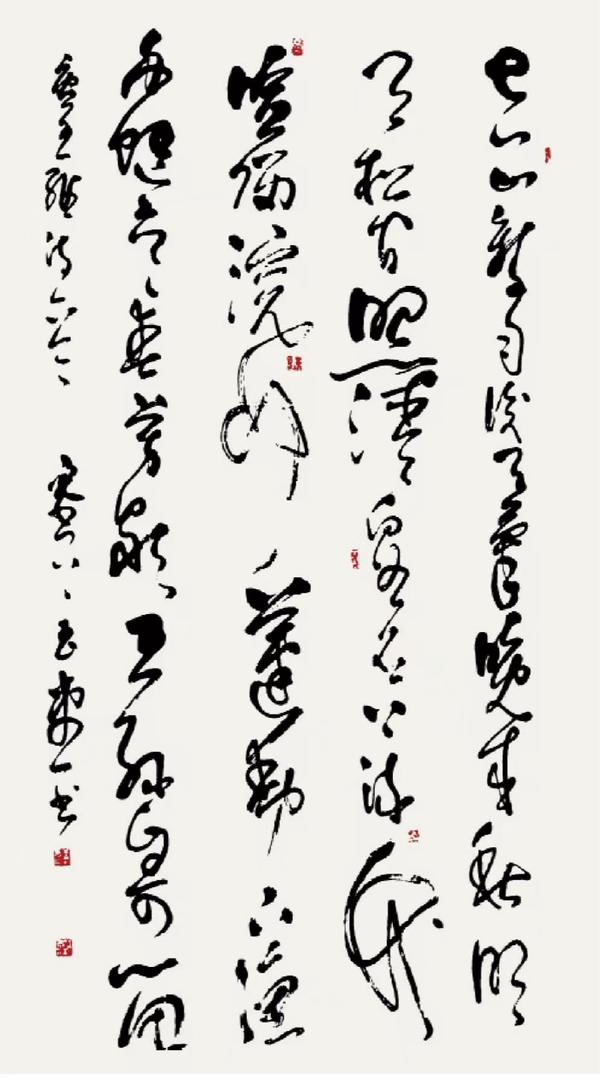 而行草则展现出他对“帖学”的深刻领悟。行草贵在意气连贯,先生的行草作品如行云流水,笔势往来顾盼呼应,却无一丝轻率之感。他借鉴王羲之《兰亭序》的灵动、米芾“刷字”的爽利,更融入怀素草书的豪放,形成“刚柔相济”的个人风格。单字看,笔画牵丝映带自然,提按转折精准;通篇观,行气贯通如江河奔涌,字与字、行与行之间疏密有致,留白处似有“气”的流动。尤为难得的是,他的行草虽显洒脱,却始终“放而不纵”——即便笔势最奔放处,也能以细微的顿挫收束力道,避免了狂草易犯的“野怪”之病。