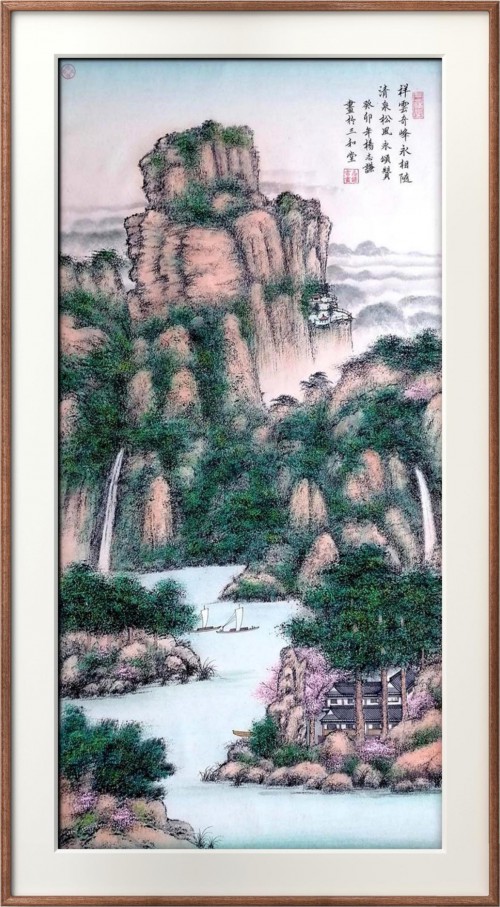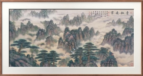 《青松绿竹常相伴,白云清泉常相随》112×56cm