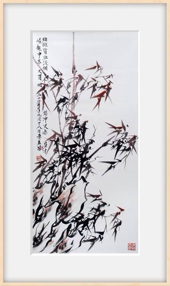 从技法角度而论,画竹,无论是竿、枝、叶,均须笔笔用心用力。理想之竹,应达到竹竿劲健,竹枝坚韧,竹节坚硬,竹叶精神。因此,下笔画竹,精力要集中,脚步要踏实,腰杆要挺立,握笔要稳妥,运笔要劲健。每画一笔,都要引足气,上天入地,左右开弓,“眼前一片萧萧竹,拂面清风净无尘”。竿竿竹子,散发清香,忧愁怨恨齐消,荣辱得失皆忘。此画竹之妙也!