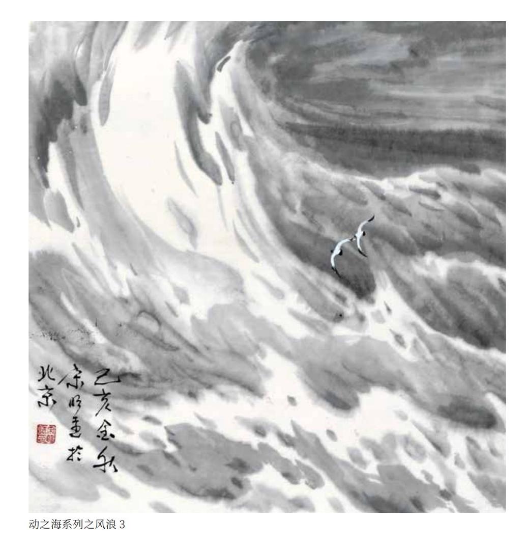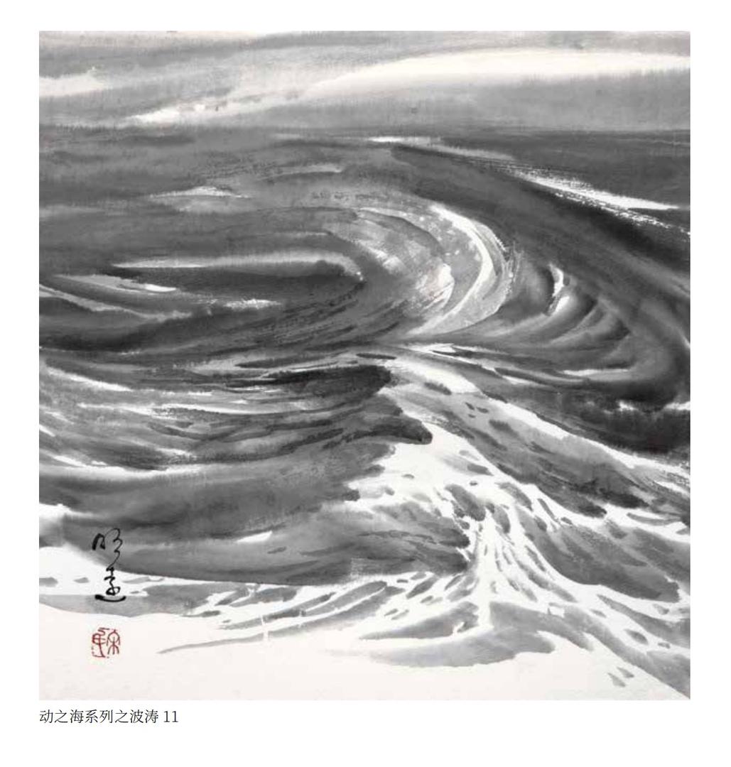 《宋明远海水画谱》500图,涵盖了动态的海、静态的海、四时、四季与不同气象条件下的海水运动形式共38种,包括波、浪、涛、潮汐等,从海水的运动规律和不同力的作用角度,解构海水运动形态的构成,分为中心体构成、上下两体构成与左右起势构成等共10种形式。