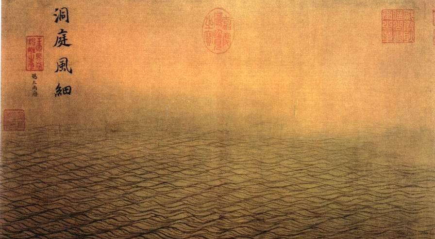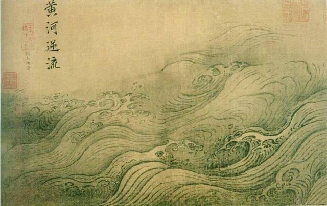 马远从平静的“洞庭风细”到汹涌的“黄河逆流”,从灵动的“秋水回波”到壮阔的“长江万顷”,对水“随形赋势、因境变式”的精准刻画,采用典型的南宋院体技法,以中锋用笔勾勒水纹轮廓,线条匀细流畅,辅以淡墨渲染,形成“骨法用笔”与“水墨晕章”的完美结合。其水纹组织严谨有序,极富装饰性,整体呈现出古雅精致的审美倾向。