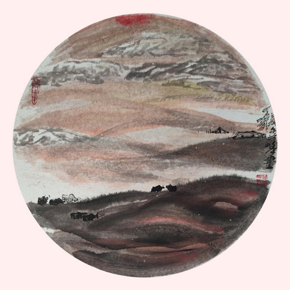 世人谈李秀峰之画,多赞其笔下西北人物的鲜活灵动,却鲜少留意,那裹挟着风沙与暖阳的山水底色,才是其画作魂脉之所系。她的山水,从不是孤立的布景,而是与生灵共生的精神疆域,一笔一墨间,尽藏天地人文的和谐真意。