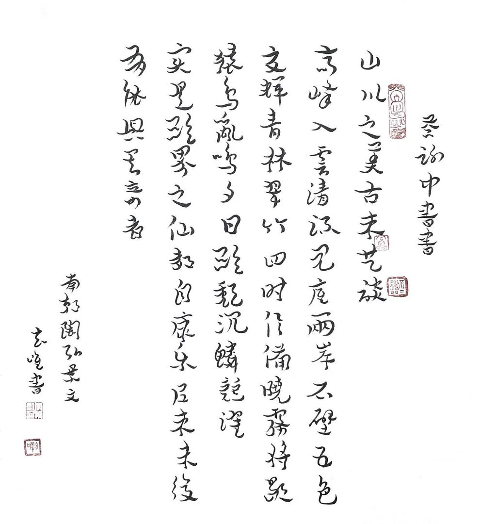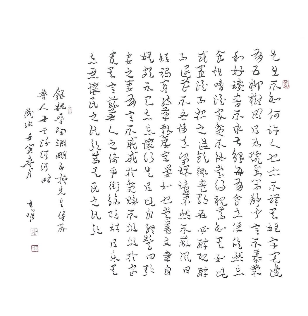 临别时,他送我一幅小字,写的是:“行于大地,心在云端。”这大概就是他最好的写照——双脚深深扎进泥土,关注最具体的人与事;精神却自由翱翔,在笔墨间追寻无限可能。