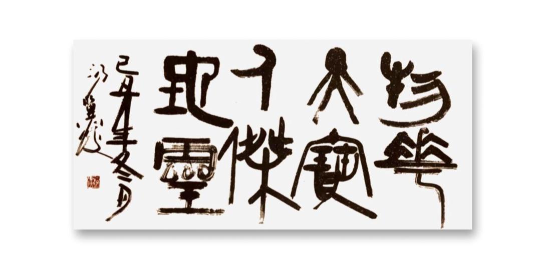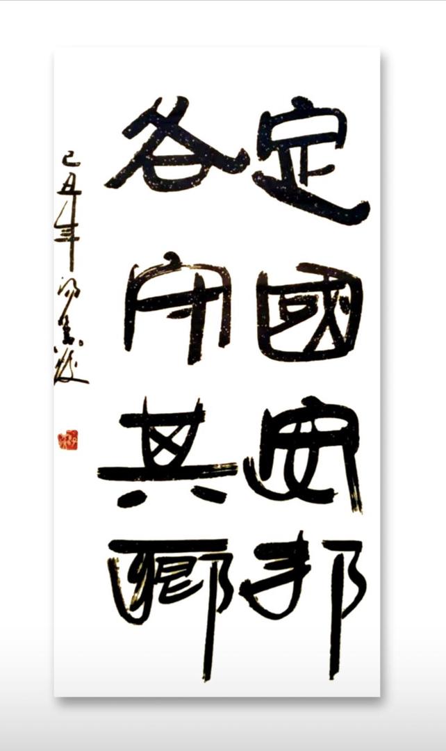 “艺术家的创作应根植于社会文化需求,且需与人民喜闻乐见相对应。”他说,“比如书法,格言警句,优美古今诗文都是我们创作的素材。但不是机械描字,做字,抄袭字,要用架构包括章法,线条,韵律,以及黄金分割率等与书文有机结合,传递发扬文章内涵。”