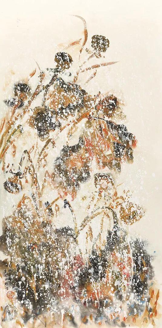 要画出西湖“风光不与四时同”的盛夏荷花景致,对画家来说是一个恒定的艺术命题。想廿年前我陪同陈家泠兄于酷暑的西湖曲院风荷,冒着39P以上的高温坐着小船深入闷热的荷丛去观荷、品荷、写生荷,那是一份感动自己的造化之记忆与寄情。叶向礼先生也必然如同我们的这个研道之样式,而画岀夏荷之生态、夏荷之奔放、夏荷之映日,而为艺术人生之快慰。他的这类荷画系列最能表达他对荷花的精诚与乐道。