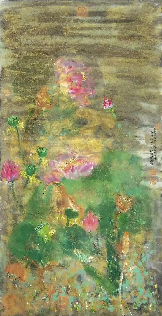 叶向礼先生的荷画系列,既有着国画的笔性之艺,也加入了五彩缤纷的光彩之美,这类画在光的映影下,便如有着西方印象派大师莫奈的睡莲之图像美。这无疑是画艺的拓展与心灵感受的碰撞之果,也必然是这个美好时代中的一束艺术本相O