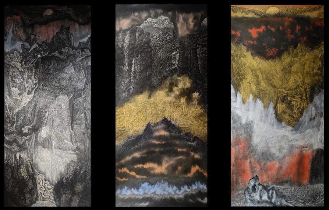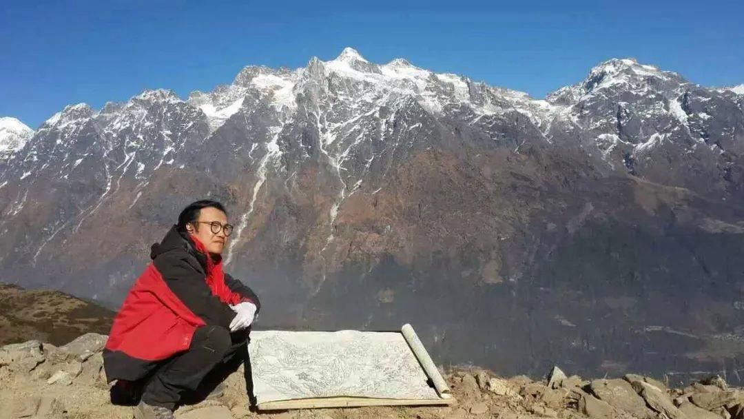 在不断的写生与创作实践中,余涵宇开始尝试将中国传统绘画技法与西方绘画理念相结合。他深知,要表现出雪山冰川的独特魅力,不能仅仅依赖传统的笔墨。中国传统金碧山水的辉煌灿烂,积墨技法的厚重深沉,在他的脑海中不断交织碰撞。他大胆地将金碧山水的色彩运用到对雪山的描绘中,让金色、银色与墨色相互映衬,展现出雪山在阳光照耀下的神圣与庄严;同时,通过层层积墨,塑造出冰川的立体感与质感,使画面具有丰富的层次和深度。例如,在描绘冰川的裂缝时,他用浓墨勾勒出裂缝的轮廓,再用淡墨层层渲染,表现出裂缝的深邃与神秘;而在表现雪山的积雪时,他则巧妙地运用留白与淡彩,营造出积雪的洁白与松软。此外,他还借鉴了西方绘画中的光影关系和构图法则,使画面更具视觉冲击力。在构图上,他常常采用全景式构图,将雪山冰川的雄伟气势完整地展现出来,同时又注重画面的疏密、虚实对比,让观者的目光在画面中自然流转,仿佛身临其境。