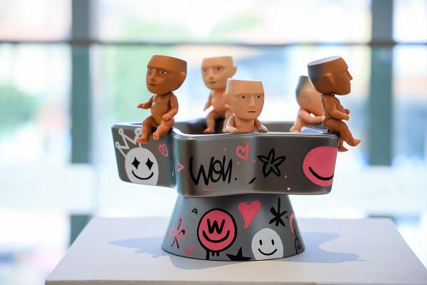 陆姝廷《冲掉》 3D打印树脂、喷漆表面处理、现成玩偶身体部件、油漆笔 22cm×30cm×30cm 2026年