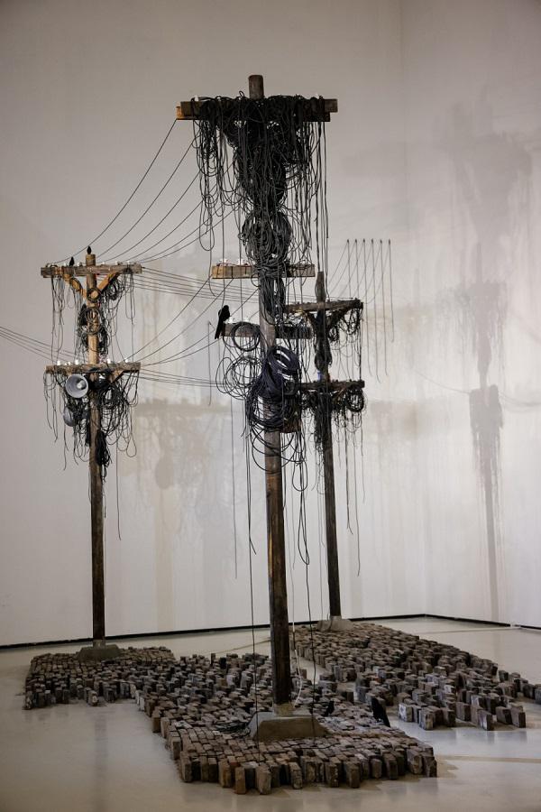 张钿昊《回响》 电线杆、青砖、电线 500cmx300cmx1800cm 2025年