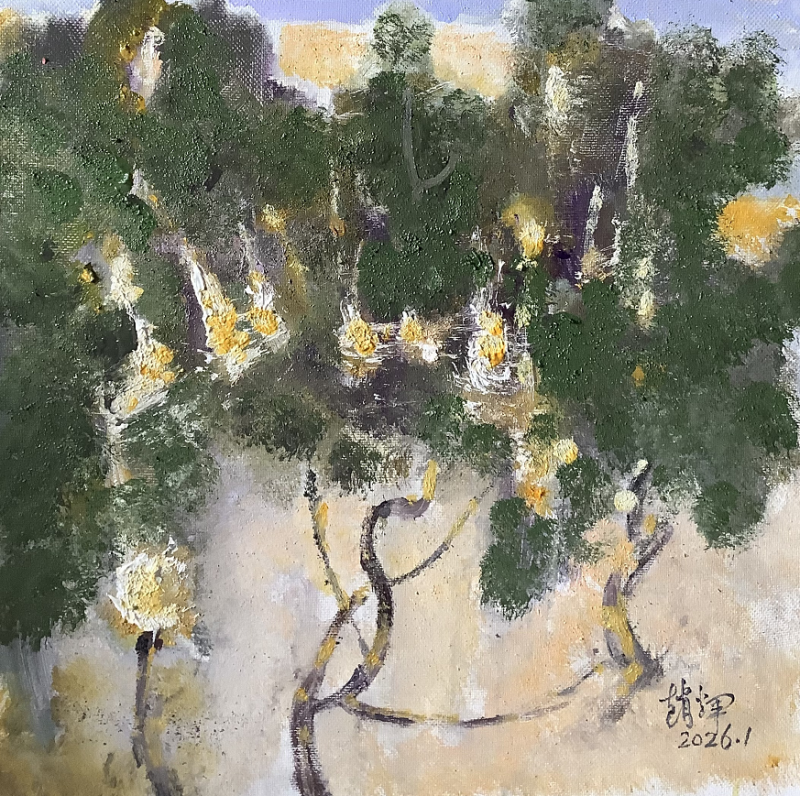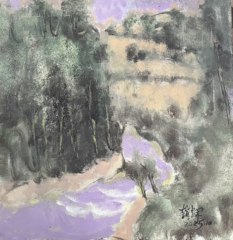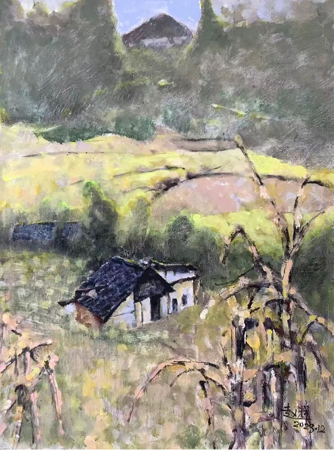 他的绘画风格进入一种更充分的笔法中。画面中的运笔来自更有信心的笔法,表达着超过单一姿态的意义。始终关注着西方油画与民族绘画审美经验的统一性上,怎样以艺术语言来实现心中意象的显现,能够看出他吸收了中国画的精神内涵。他的画就象在读一首田园的抒情诗。