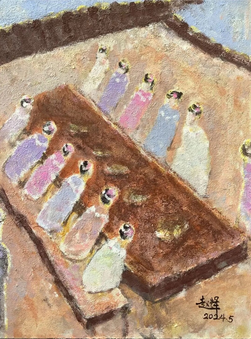 赵辉的作品注重于一种直抒胸臆的情感标的。在他的绘画作品中,我们看到的是另一般风景画,并非如摄影般的临墓,而是以大的色块、线条,表达一种内在精神。
