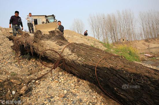 2018年3月14日,湖北省宜城市,雕刻师胡小波痴迷阴沉木,2012年开始从事阴沉木打捞。花费16年时间,先后从汉江等河流先后打捞了200多根阴沉木,耗资近200万元。胡小波表示他家目前还堆放着100多根阴沉木,希望能把这些阴沉木“种起来”供人免费参观,让大家了解神奇的阴沉木。