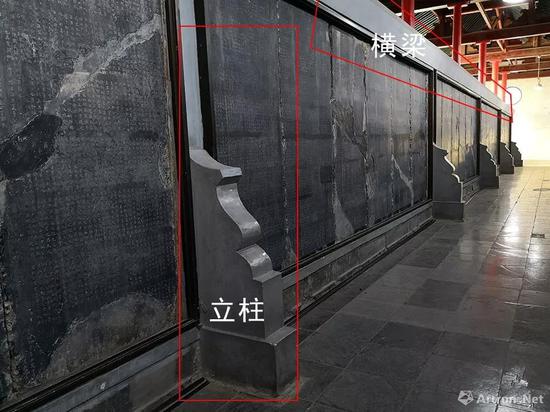 在此基础上,为了进一步增加《开成石经》整体的稳定性,还将114石分为四段,并将其中两段最长的石经设计成直拐角伫立,如支撑腿一般