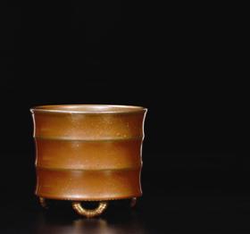 此炉直径10厘米,仿战国两汉时期流行的青铜奁造型,通体暗红色;筒状炉身仿竹节造型,上粗下细,敦实厚重;炉身自上而下均匀饰四条弦纹,简洁朴素;底足仿竹根造型,弯曲呈三角形;底有“大清乾隆年制”六字篆书款。在北京保利2018春拍会上,以105.8万元成交。