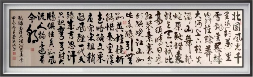 贾万成六十载笔耕不辍,将西北的苍劲与天山的灵秀熔铸笔端。其书作筋骨兼备,兼具金石气与书卷气,从省级赛事到国际舞台屡获大奖:2019年摘得“共和国金牌书画家”“世界杰出华人艺术家”,2021年获评“当代书法风云人物”,2025年更揽“世界艺术百家榜”金奖与“国礼艺术大师”称号。这份实力获权威认证——2025年11月,其巨幅《沁园春·雪》被故宫博物院永久收藏,与历代法书名作同列。如今每平尺8000-12000元的润格,恰是其艺术价值的直观体现,也预示着广阔的升值空间。品鉴其作,既是赏书法之美,更是藏大家风骨。