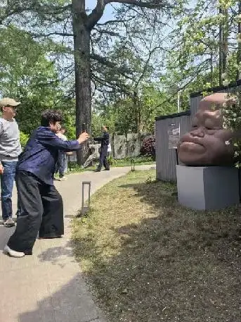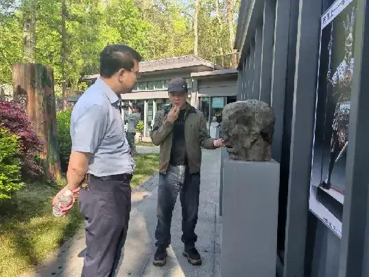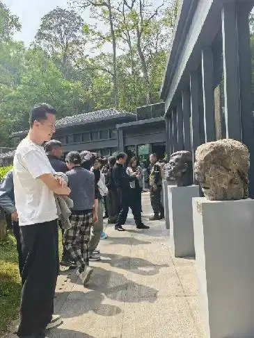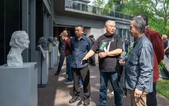 王锦霞:在这个有山有树有网红的地方,做这样一个小 而精的雕塑展非常有意思。李老师的作品,之前在他的工作 室看过,但是今天在这边看的感受完全不一样,开幕式人很 多也静不下心来,而今天我来了之后先走了一圈。也许跟我画工笔人物有关,我进来之后,我会情不自禁关注到人物的神情,我觉得这一定是有感而发,由情而发的, 就叫“情动于中而形于言”。如果李老师没有这么深厚的感情,是雕琢不出感觉的,我静下来去看的时候,哎呀!我就觉得有很多情感的因素被激发出来了,我不知道别人怎么样,但对我的感触是这样的,这个作品就是莫言像,其实之前我看 过,然后是王阳明像,就是让人觉得灵魂上受到了触动,是我最大的一个感触!跟李老师有点相似,叫勤勉以学纳于言,反正说不好只能让作品说话。