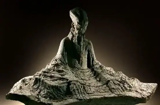 李钢的创作路径是由器及道——通过极尽精微的具象写实手段,抵达超验的、形而上的精神真实。他在《阳明悟道》《莫言20121011》等作品中,就实现了在凝固的瞬间里,竭力呈现人物的心路历程,容纳人物的 思想史维度,让雕塑成为通往人物灵魂深处的媒介。李钢作品的结构处理带有强烈的叙事张力与心理空间建 构意识。首先是瞬间的纪念碑性,他擅长捕捉人物最具情景 张力或精神转折的瞬间,如《莫言20121011》就紧扣了诺奖公布的特定日期与神情,《阳明悟道》对应龙场顿悟的临界 状态,这种场域情景产生的结构选择,使静态雕塑蕴含了巨大的心理动能与前史想象空间。
