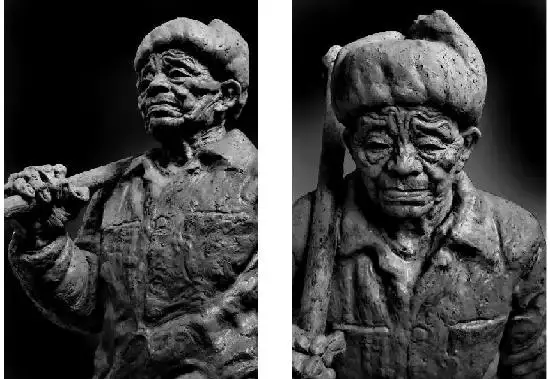 表现为学院派严谨造型功底与表现性肌理语言的融合。这 涉及到师承与技法的根基,其早期作品《今年喜事多》入选 全国美展,显示出在场景性群雕中他对民间生动气韵的把握能力。