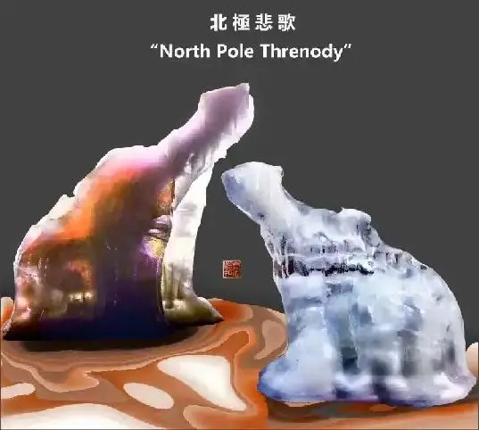 他的作品多次入选全国美展并广受关注和好评,证明了中 国雕塑艺术专业领域对其学术水准的认可。他以雕塑介入公 共话语,通过对王阳明、任正非、文朝荣、村超等题材的塑造,构建了一套可视化的贵州乃至中国当代精神图谱,他创 作的《中国孔子》《知行阳明》和《北极悲歌》在纽约时代 广场大屏幕上滚动展播,他说:孔子是中华文化的底色,王 阳明是中华文化的高光,尤其《北极悲歌》,表现了北极熊 一家在地球暖化中消融、消失、消亡的过程……它不仅表达了 中国人对全球生态恶化的高度关切,体现了“天人合一”的生态观,还慎重而庄严的告诉世界:中国人不只是固守着他们 的传统、他们的国体文化,中国人也时时关切着人类的未来 地球的明天。