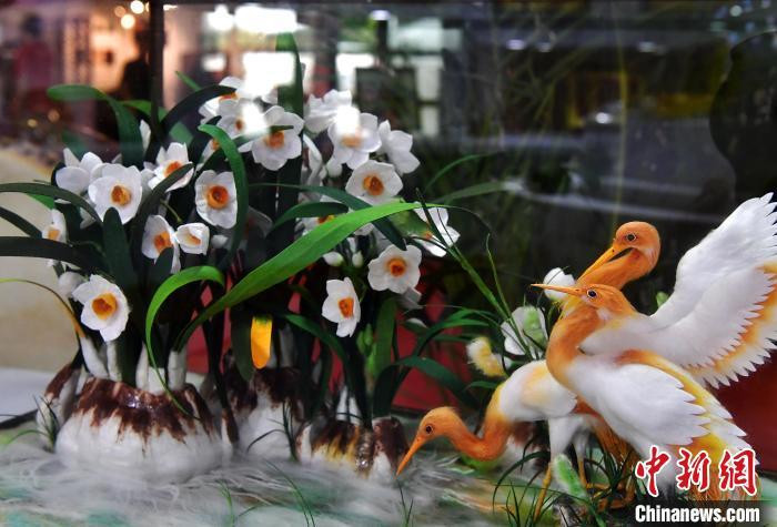 图为博览会上展示的福建漳州棉花画作品《凌波戏水婉若游仙》。 中新网记者 张斌 摄