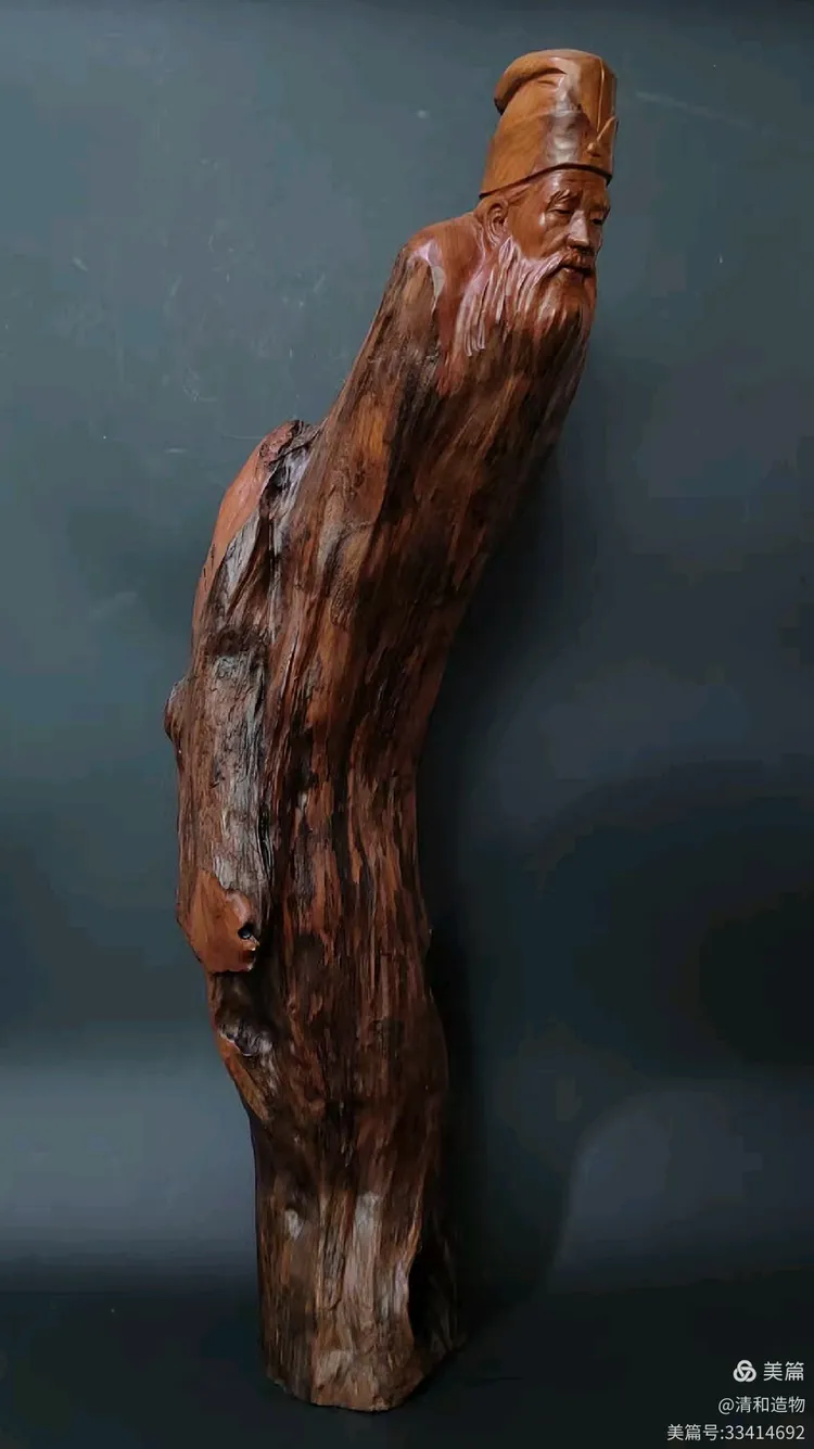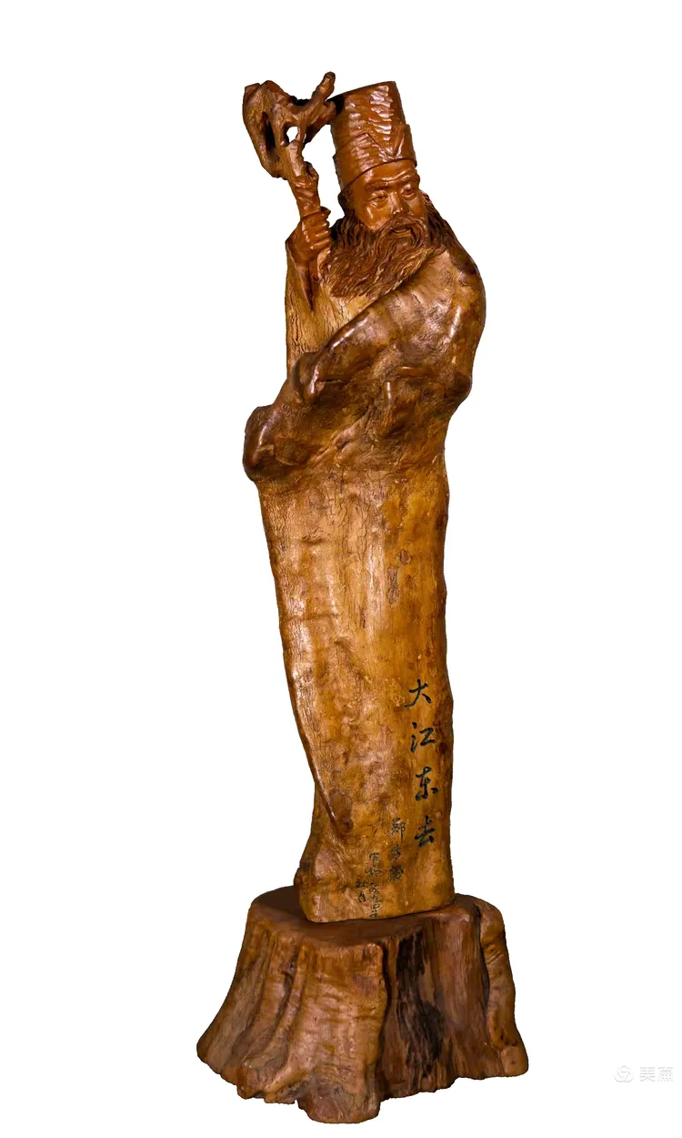 木雕艺术是人与自然的合作仪式,而刀锋正是这仪式中最直接也最真诚的语言。在在郑方杨先生那里,刀痕远非粗暴的征服,而是与木纹进行一场深情的对话。木的肌理是自然写下的诗行,先生以刀为笔,或顺应或打破那些蜿蜒的纹路,让木的秉性与人的意志交织共生。令人惊叹的细节处,是先生将木料中天然的裂痕或结节,巧妙化为衣袂的飘逸褶皱,或是眉眼间深沉的沧桑;在沉静的姿态里,又借由刀锋的顿挫节奏,把内在情感的波澜凝固为视觉的律动。每一次下刀,皆是郑方杨与木质之间无声的交流与相互成全。优秀的木雕作品,其震撼力从不止步于外表的逼真形态,而在于它揭示着一种关于生命与时间的深沉哲学。当郑方杨先生从沉重原木中释放出轻盈跃动的姿态,从坚固的材质里幻化出柔和的曲线,这本身就是对物质局限的超越宣言。它们既是具象的,又是凝练的象征符号——扭曲的形体可倾诉灵魂的挣扎,舒展的姿态则昭示精神的自由。更有力量者,并不刻意抹去刀痕,而是让那刻凿的印记坦荡地留在表面。这些刀痕,如同时间本身刻在生命体上的印记,它们并非瑕疵,而是记录着诞生过程的艰辛与真实。它们揭示了一个朴素的真理:在时间与创造的斧凿之下,那所谓“完美”的幻象,远不如真实的不完美更能映照出生命存在的深度与温度。在机器复制的轰鸣声淹没一切的今日,郑方杨先生以手抵心、以刀传魂的创作,便具有了格外珍贵的意义。这不仅是传统技艺的延续,更是对生命本真的一种执着叩问。那刀斧留下的痕迹,是时间与存在共同谱写的诗行,它无言地述说着:真正的生命,从未惧怕被岁月刻下印记;真正的美,恰在那些深刻而真实的“不完美”中吐露芬芳。