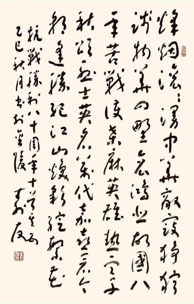 烽烟滚滚漫中华,敌寇狰狞践物华。四野哀鸿悲故国,八年苦战护桑麻。英雄热血千秋颂,烈士英名万代嘉。喜看今朝逢胜纪,江山焕彩绽繁花。
