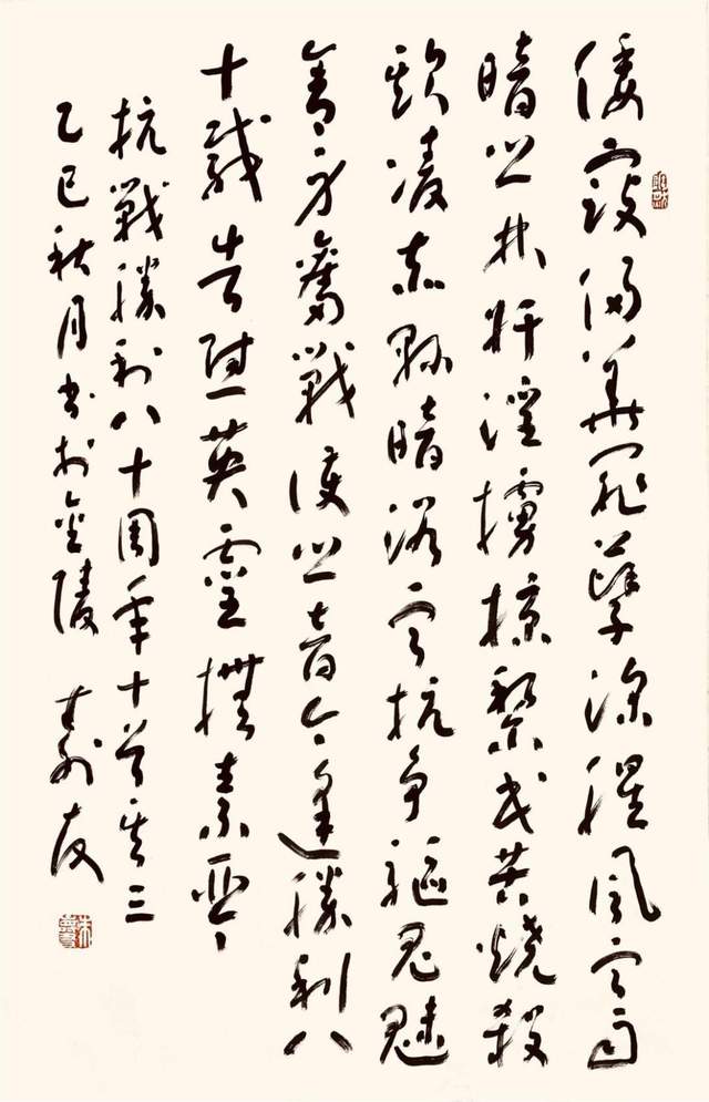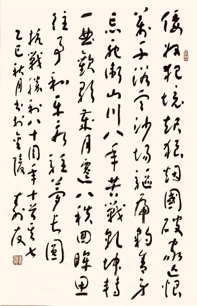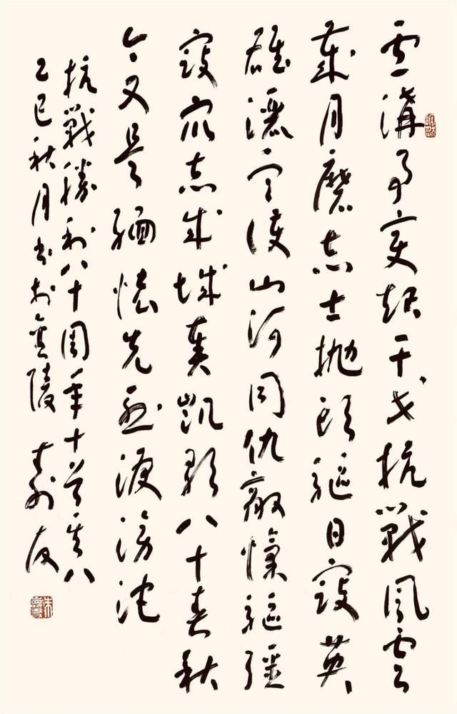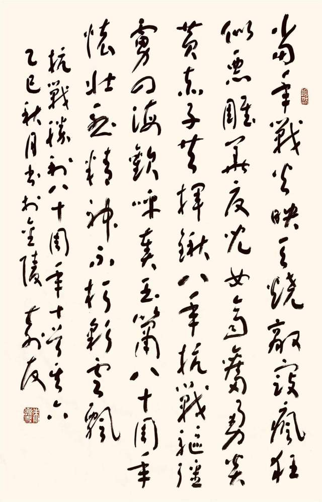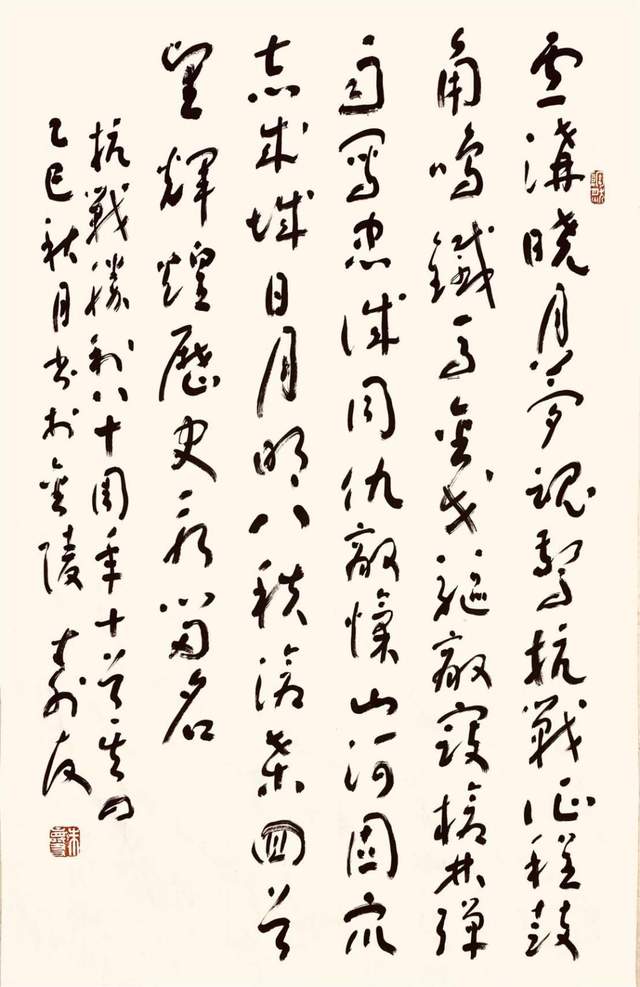 忆昔倭奴犯九州,山河破碎万民愁。八年抗战驱魑魅,四海欢呼解倒囚。八秩春秋怀壮烈,万千英烈载青眸。今朝喜看中华盛,永保和平岁月悠。