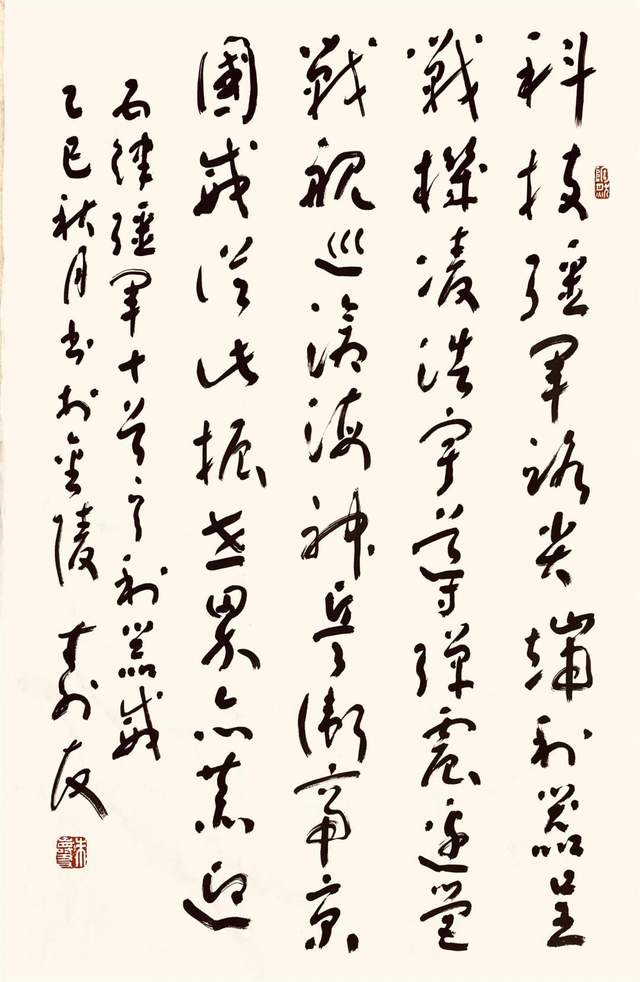 科技强军路,尖端利器呈。战机凌浩宇,导弹镇边营。战舰巡沧海,神兵卫帝京。国威从此振,世界亦恭迎。