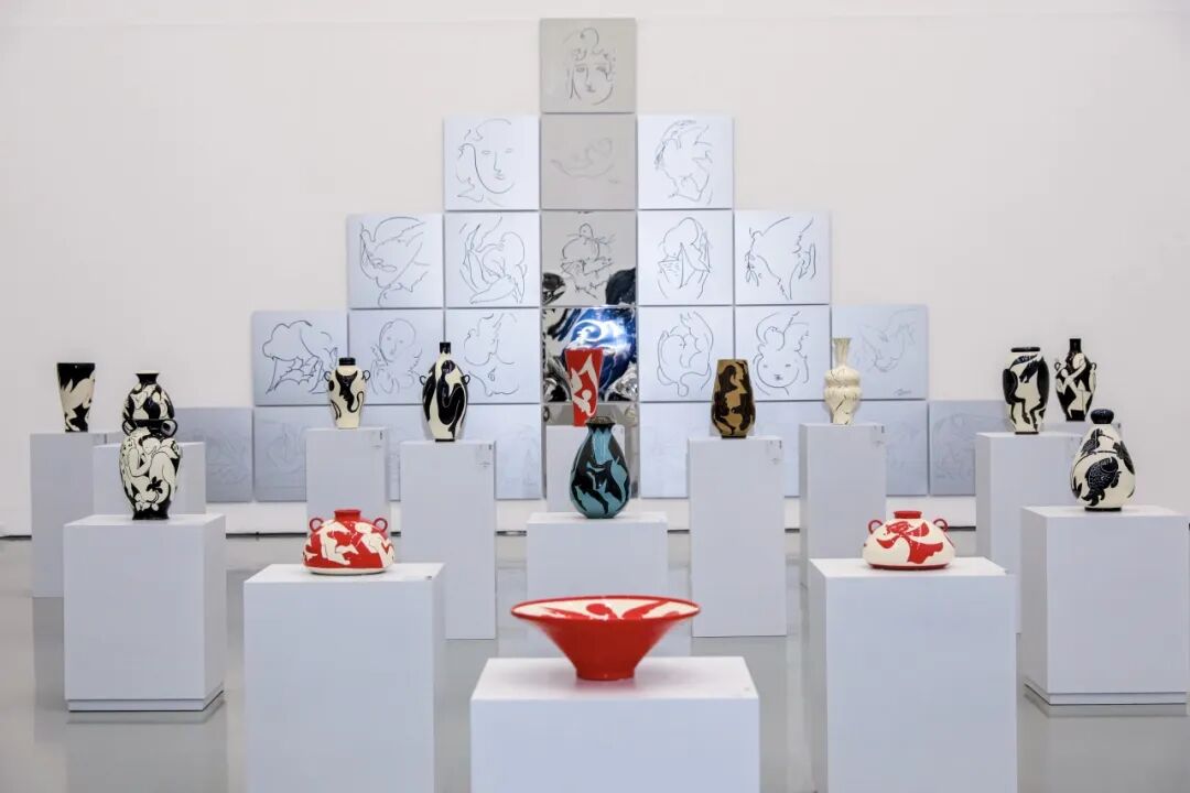 今日美术馆学术邀请展“心向天宇——刘巨德艺术作品展”,于今日美术馆1号馆2层共展出刘巨德艺术作品水墨、陶瓷、手札、雕塑、纤维艺术、版画计200余件,大部分为刘巨德先生近两年新作,其作品体现出独特的浑沌美学价值。他从哲学⾼度⽐较中西绘画,以异求同、以同观异,展现出深刻的思辨⼒与⼈⽂关怀。以统⼀的形式美原则贯穿不同⻛格,逐步探索出形式美的普遍规律。此次展览将其作品进行整合排序,集中呈现了一个和谐统一的多种媒介的艺术世界。