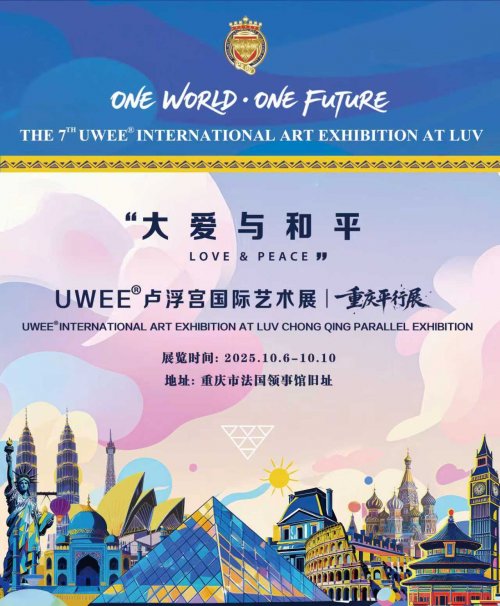 2025年由UNION CULTURE联合仁文国际艺术与”UWEE卢浮宫国际艺术展中国区办公室“主办,由重庆市书画研究会联合主办,重庆市渝中区侨联作为指导单位,重庆市美育研究会作为协办单位,联合举办 “大爱与和平”UWEE卢浮宫国际艺术展·重庆平行展,展览涵盖绘画、雕塑、摄影、综合材料等多个艺术门类,倡导“本土视角、国际表达”,助力中国艺术走向世界舞台。传播本国文化,建立国际友谊,促进世界文化融合与发展。“ONE WORLD·ONE FUTURE"同一个世界·同一个未来!