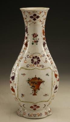 清乾隆广彩浆胎花卉奖杯纹瓜棱扁瓶(广东省博物馆藏)