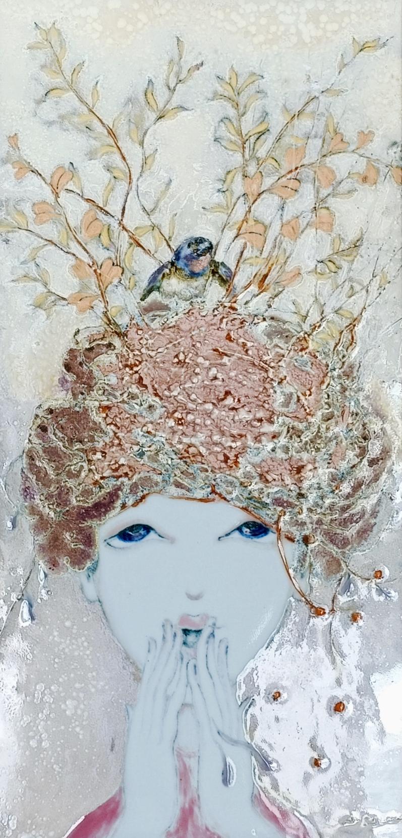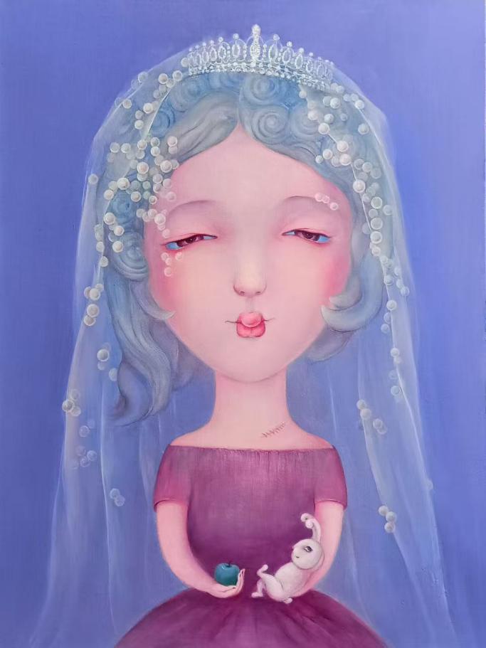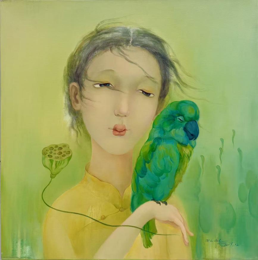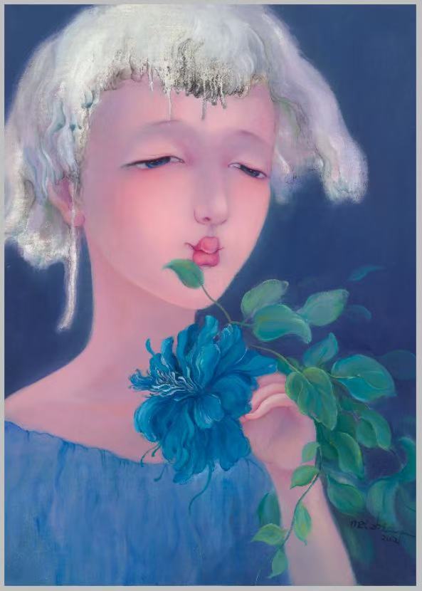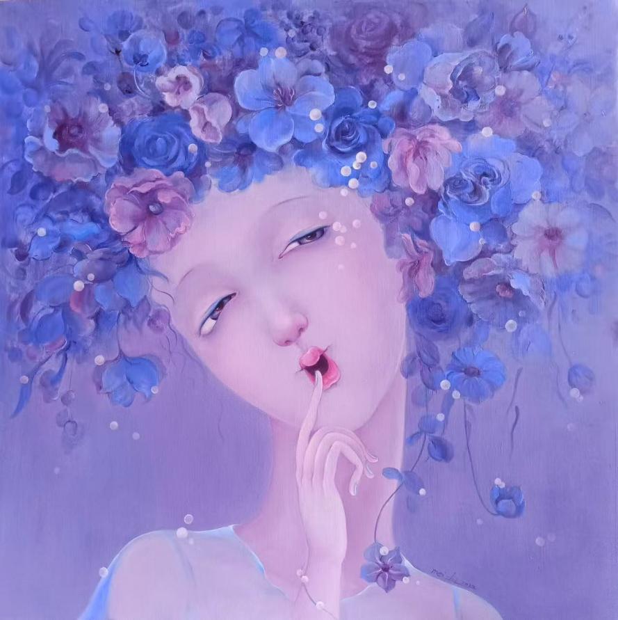 2008年,在北京宋庄画家村成立了自己的艺术工作室,成为蔡梅之艺术生涯的重要转折点。在这里,她的 “小女人花非花” 系列作品逐渐成型,创作重心开始聚焦内心世界,将个人情感与对生活的观察深度融入画面。时光流转至今,她的作品虽延续着最初的创作理念,却在内容与色彩上愈发丰富,更在中西艺术的融合中开辟出独特方向 —— 以西方绘画材质为载体,融入中国传统表现风格,刻画兼具传统美感与东方韵味的女性形象。正如她所言,这些形象并非刻意的自画像,而是 “骨子里流淌的血液自带的东西”,个人气质在创作中不经意间自然流露,形成了 “画如其人” 的独特风格。生活中的她偏爱淡然:淡淡的饭菜、淡淡的妆容、淡淡的香水味,这份平和心境延伸至作品中,让画面自带淡雅宁静之美,仿佛能让观者在喧嚣中寻得一份静谧。