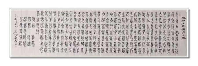 如今,他的工作室里整齐排列着 200 多本研究笔记、近千张各时期鸟虫篆拓片。这份 “偏执” 的热爱,让他摸索出鸟虫篆书写规律,形成 “灵动不失庄重、华丽兼具古朴” 的独特风格。更是虚心学习,遍访名师,潜心学习,终于在2025 年,李志斌正式被评选为 “非物质遗产项目鸟虫篆传承人”,形成了 “灵动不失庄重、华丽兼具古朴” 的独特风格,让更多人见识到鸟虫篆的魅力。