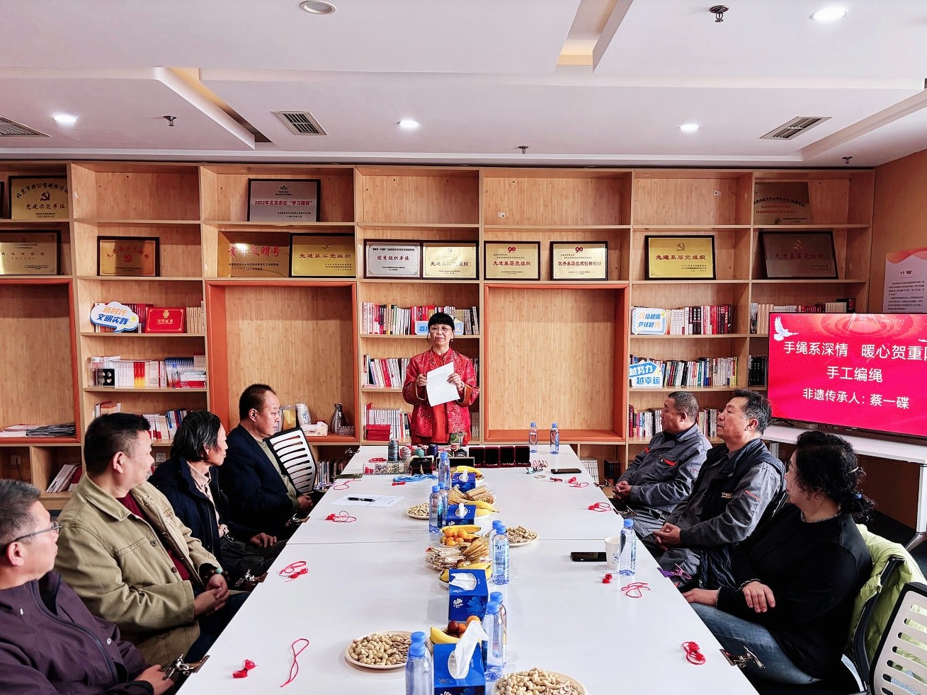 本次活动内容丰富多彩,融合了手工体验、思想交流与温情慰问。其中,“手绳系深情”手工编绳环节特邀人民美术网执行总编、非遗传承人蔡一碟老师现场指导,让老同志在一绳一线的编织中感受非遗魅力,重温手作的温度;随后开展的“九三阅兵”观影感想分享环节,将为老同志们提供交流心声、抒发情怀的平台;活动最后还进行了爱心慰问,致以节日的诚挚问候。