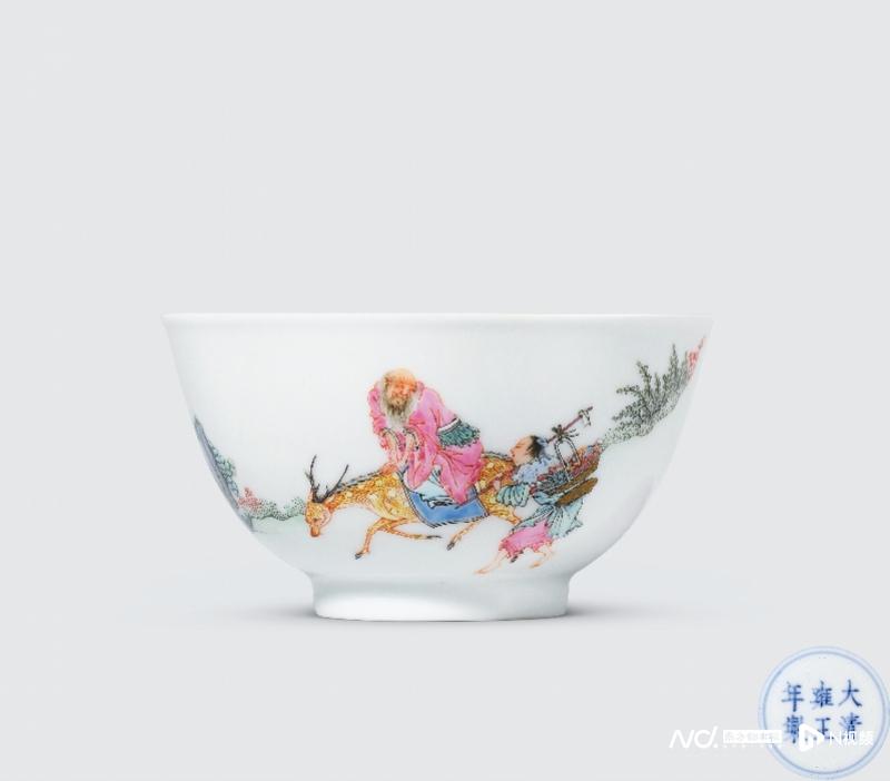 清雍正, 粉彩神仙人物纹茶圆 “大清雍正年制”六字三行楷书款,雍正本朝 D 9.8