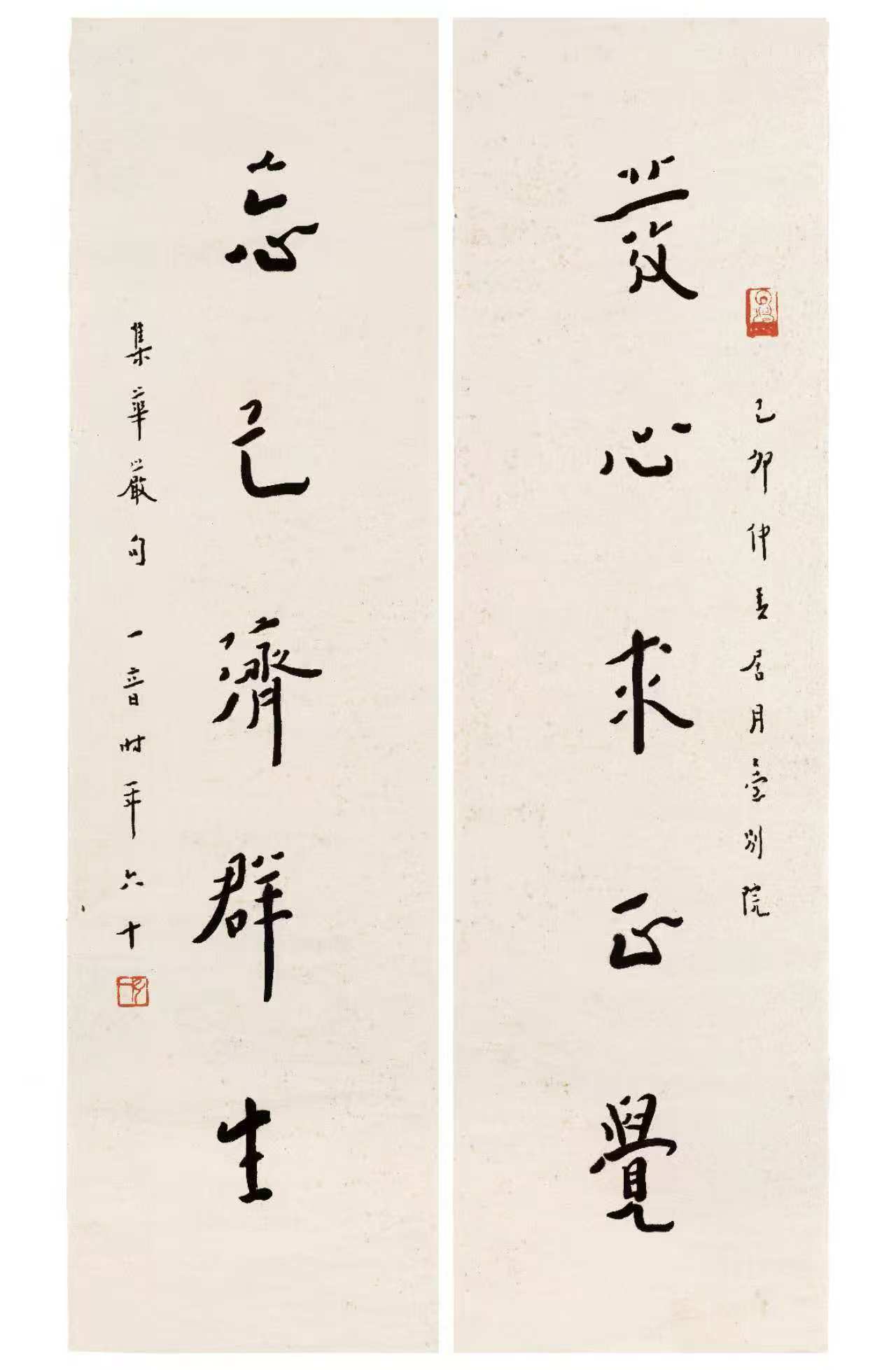 本次展览以大师晚年“弘体”作品为核心,特别呈现1932年他在乐清创作的朱砂篆书佛号中堂。这件珍品与温州博物馆所藏同题墨本形成“朱墨映照”,堪称艺术双璧。大师中年出家后诸艺皆舍,唯书法不废,将禅心融入笔墨,晚年作品超脱尘俗、归于自然,达到“人书合一”的至高境界。