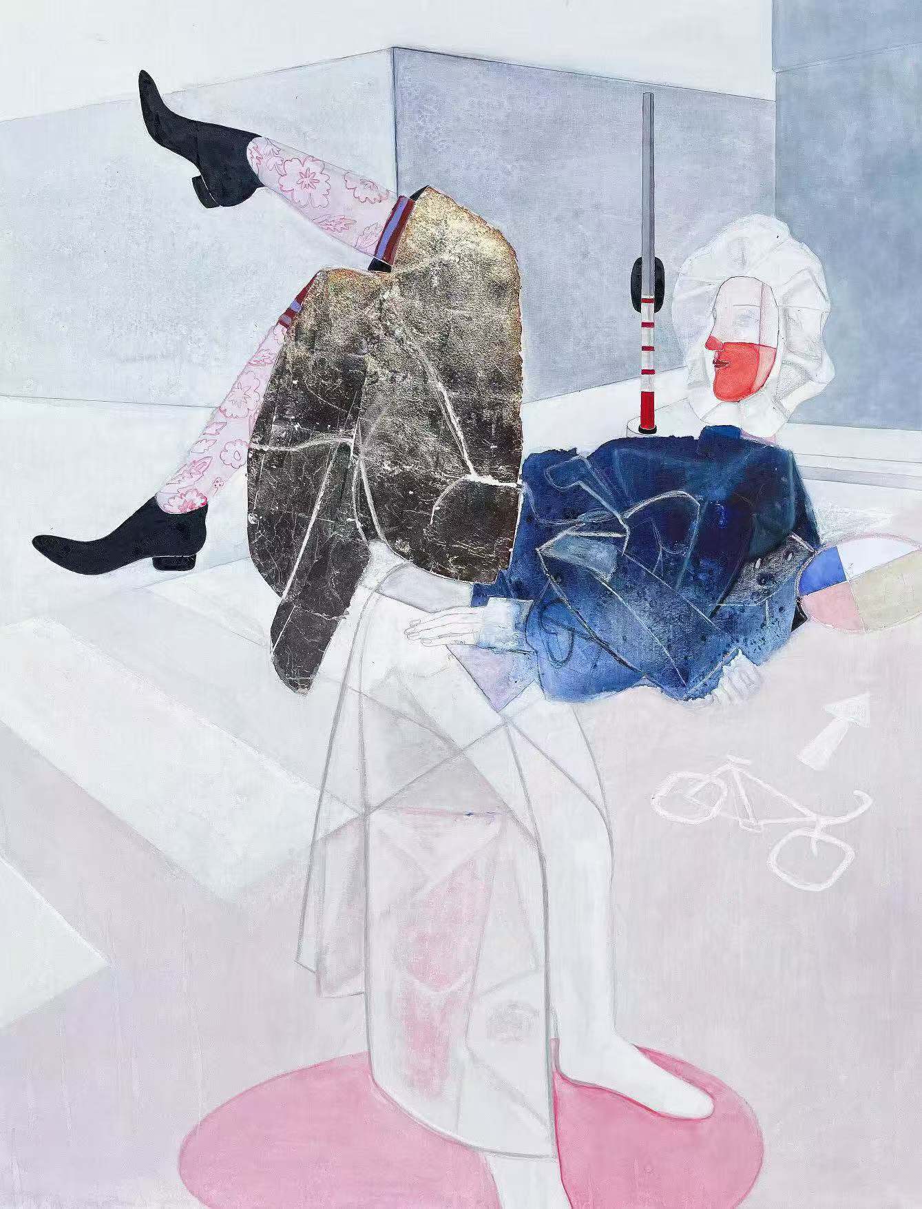 王玉华作品丨《我是一个副本》(150/200厘米,布上矿物色,箔)